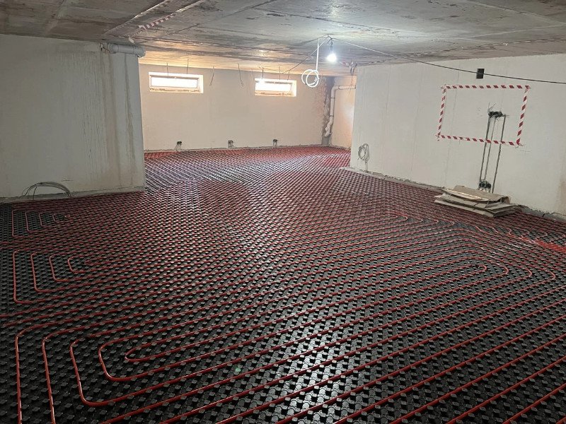 - Надежные контуры: Использование цельных отрезков труб из сшитого полиэтилена (PEX-a) с кислородным барьером, что исключает протечки внутри стяжки.