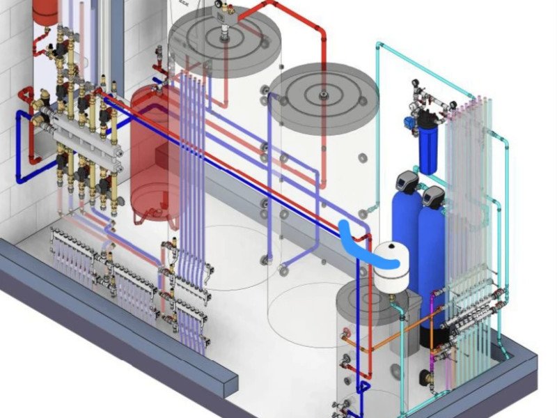 - Гидравлическая балансировка: Расчет диаметров труб и настроек насосных групп, чтобы тепло и вода доходили до самых удаленных точек дома (например, в санузел на втором этаже) с нужным напором и температурой.